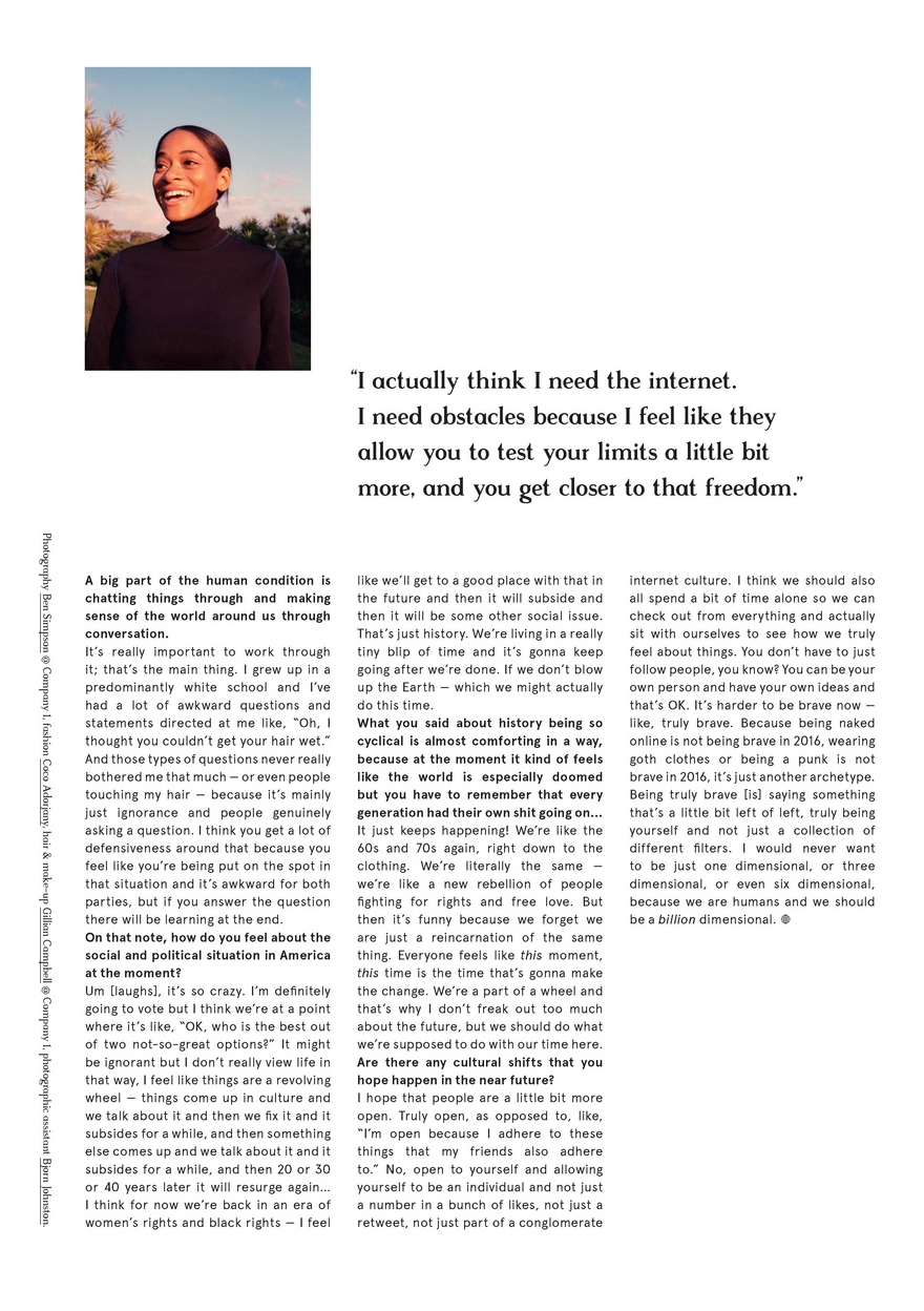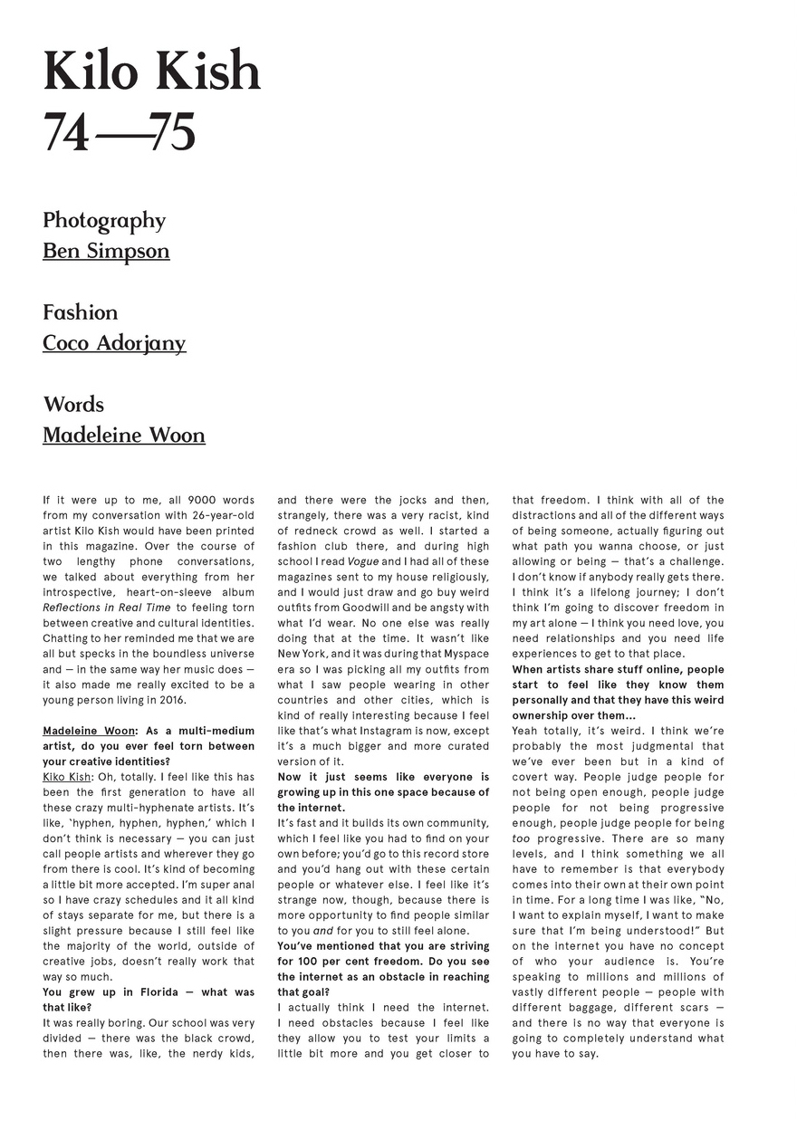 In conversation with musician Kilo Kish about the cyclical nature of politics, feeling torn between cultural and creative identities and the true meaning of bravery for Oyster #109: The Tomorrow Issue.
